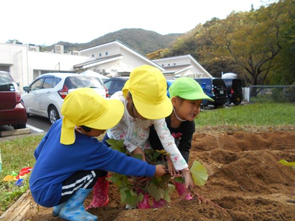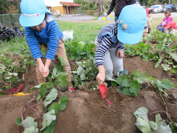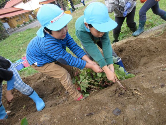 掘ったお芋で、来月は焼き芋をします。みんなで掘ったお芋の味を、今から楽しみにしています。