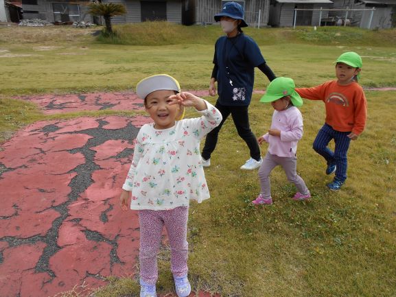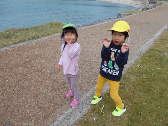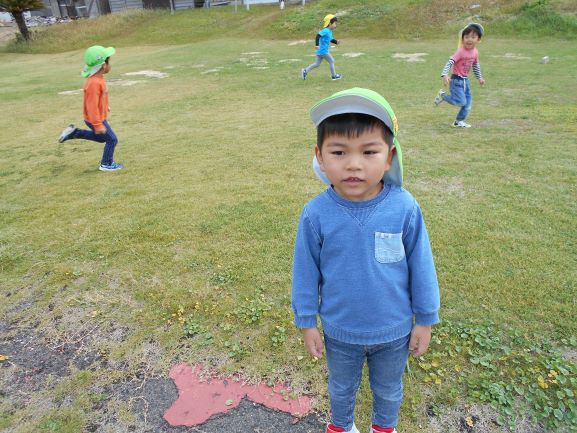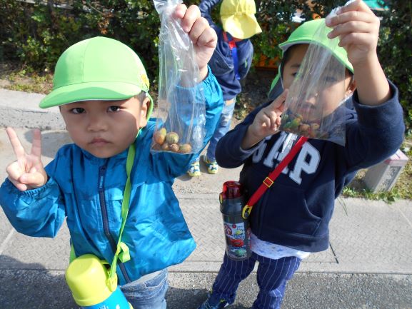 10月29日にそら組だけで散歩に出かけました。久しぶりの散歩に大喜びで出かけた子ども達です。小波の海では、みんなでかけっこやおにごっこを楽しみました。また、帰り道ではどんぐりスポットがあり、みんなで拾いました。「帽子をかぶってるね」、「まだ小さいどんぐりだね」と可愛らしいつぶやきもたくさん聞かれました。気候のいいこの季節、これからたくさん戸外に出かけたいと思います。