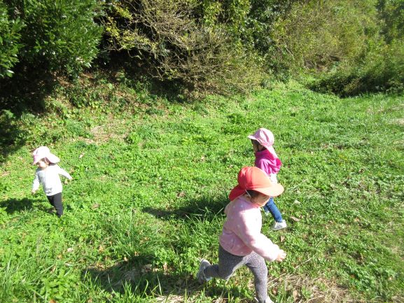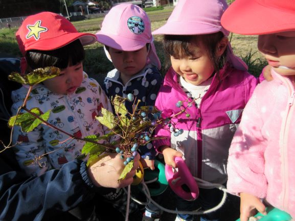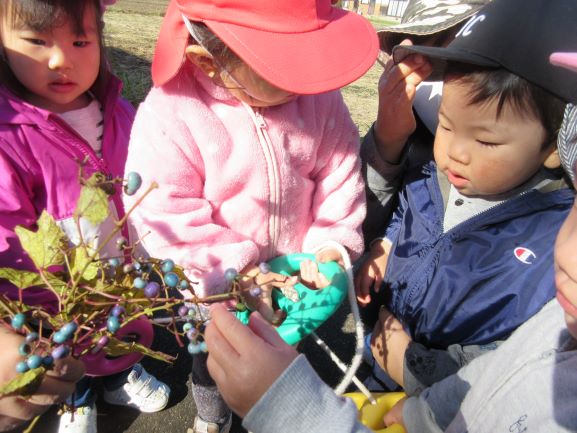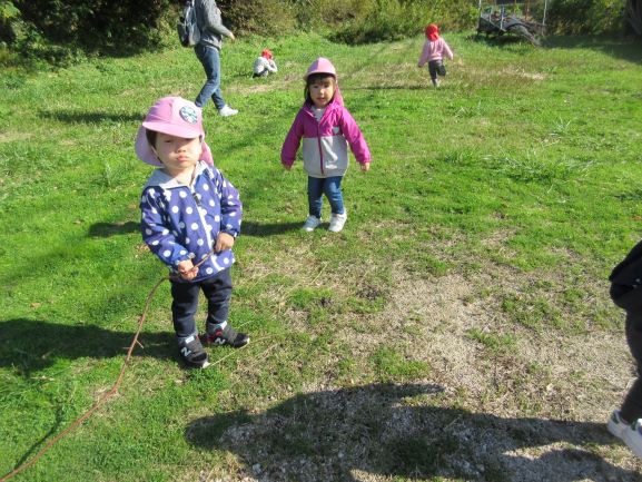 途中で、きれいな木の実を見つけたり、広場で遊んだりしました。